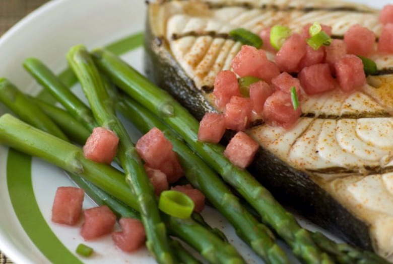 Halibut steaks are marinated in watermelon-raspberry vinaigrette, quickly grilled, and then topped with refreshingly tart watermelon salsa. Don't be fooled: This fresh and exciting entrée is ready to serve in minutes. Get the recipe here.
