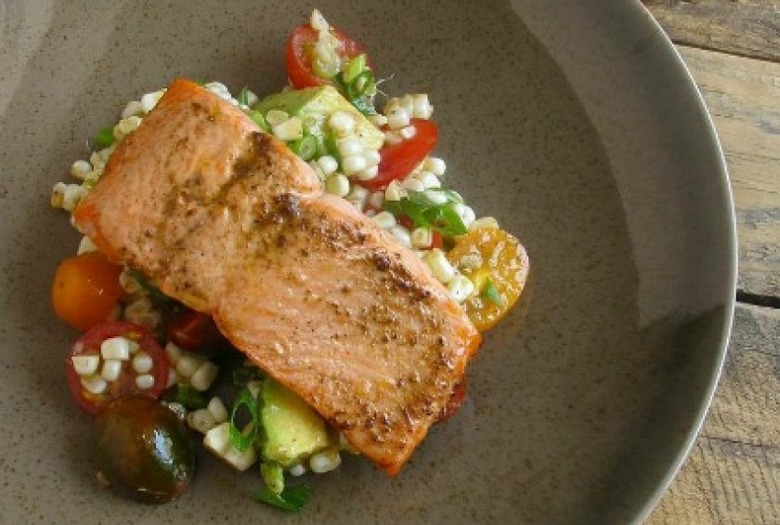 Salmon With Chesapeake Corn, Tomato, Avocado Salad