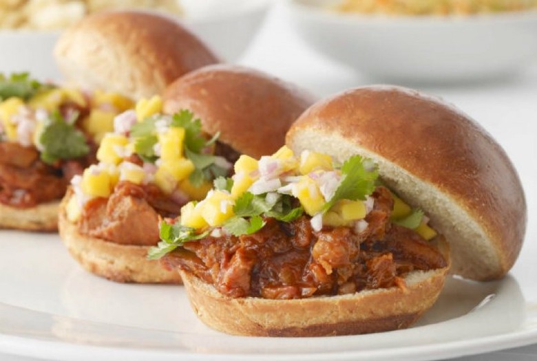 The pulled pork in this recipe gets all its flavor from a combination of orange juice and coffee in the marinade, then this strange combo cooks down into a sticky, finger-licking-good sauce. The mango, fennel, and celery root brighten the dish adding crunch and contrasting flavors. Check out Pull Pork Sandwiches With Mango Salsa recipe here.