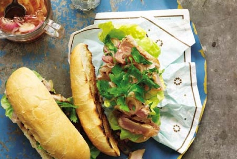 The tart, sweet hints of black cherry lemonade cuts through the smoky richness of this funky, Sonoran-style hot dog. Get the recipe here.