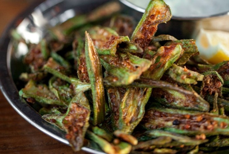 Crispy Fried Okra With Amchoor, Chile, and Cucumber Raita