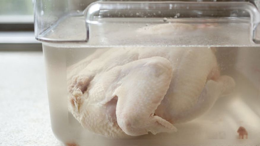 Whether they're citrus or sugar-based, people love to brag about their brines. But Chad Brauze, head chef at The Back Room at Park Hyatt New York says brining doesn't always make for a tastier turkey. "I have great luck pre-seasoning up to 48 hours beforehand," he says. "The trick is to buy your bird five days ahead, unwrap it and place it on its own shelf in the refrigerator. (Use a cookie sheet with a rack so that it doesn't sit in its juice.) Two days before roasting, sprinkle the entire bird very liberally with a mixture of Herbes de Provence, sea salt and black pepper. On the day of roasting, pull the bird out an hour ahead to take the chill off of it." Then heat up the oven and you're ready to cook your delicious, brine-free bird.