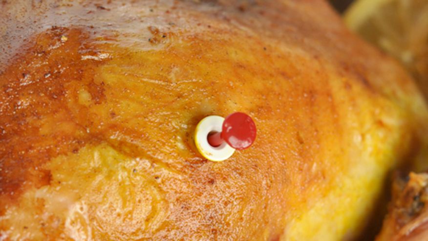 The first step to cooking the perfect turkey is to toss out the plastic timer stuck in its breast. Chef Dan Holzman, owner of the popular franchise The Meatball Shop, blames the mistake of trusting the timer for many of the season's overcooked birds. "When that thing pops, your turkey is way overcooked," he says. "The best way to gauge if your turkey is done is with a thermometer. Push it deep into the thigh and when it registers 150 degrees, pull the bird and let it rest at least 30 minutes before slicing. It will be perfect!"