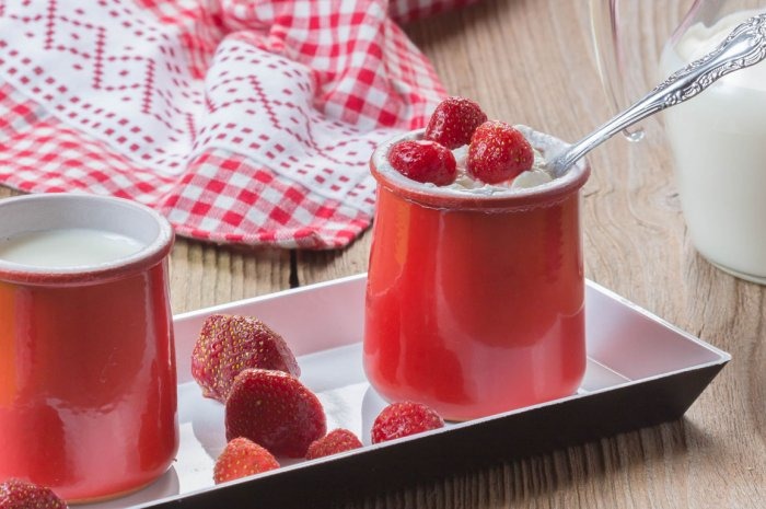 A six-ounce serving of fat-free (0 percent) Greek yogurt averages about 100 calories. Turn it into a thick and creamy treat by swirling in 25 smashed red raspberries and sprinkling a teaspoon of miniature semi-sweet chocolate chips on top. Not craving berries and chocolate? Try a teaspoon of honey, seven chopped pistachios, and a pinch of cinnamon instead.