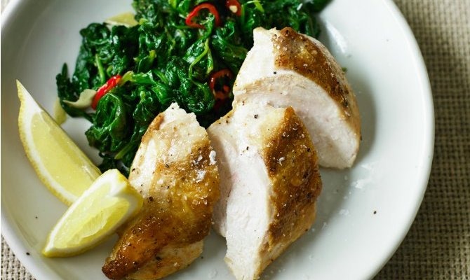 For the Really Juicy Chicken Breasts with Garlic Spinach recipe, click here.