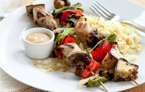 Honey Mustard Chicken and Vegetable Kabobsmarinade keeps the chicken from drying outFor the Honey Mustard Chicken and Vegetable Kabobs recipe, click here.