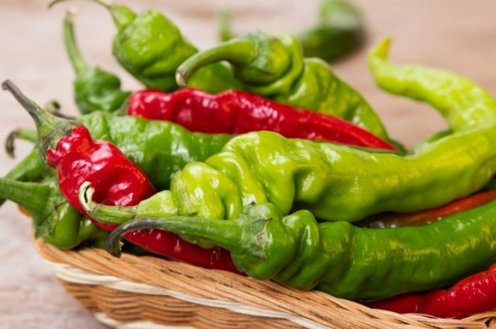 You should wear gloves when handling hot peppers, even when you're washing them — the pepper's natural oils can burn your skin and eyes. Run peppers under cold water and scrub them gently with a clean brush since they have a thick, waxy skin.
