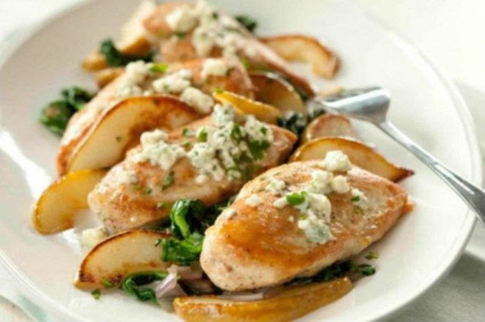 Baked Chicken with Spinach, Pears, and Blue Cheesepears