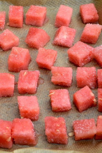 Add a pop of pink to your drink with these watermelon ice cubes. This is also a super easy way to infuse your water with fruit.