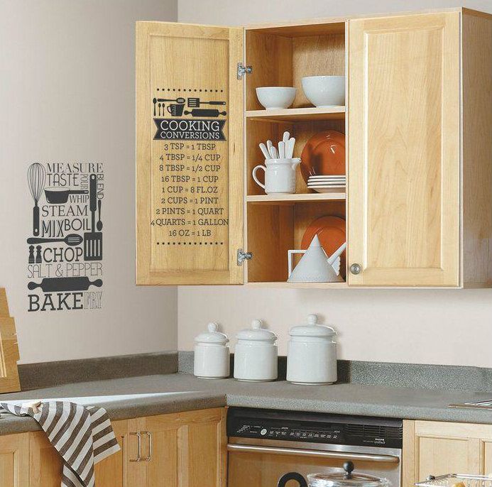 Post common kitchen measurements on your wall. This is a great tip for new cooks and for busy families. Having an easy-to-read chart handy will prevent any snafus like mine. Consider an attractive, premade wall decal you can place on the inside of cabinet doors or on the wall next to counters to have a quick reference always on hand.