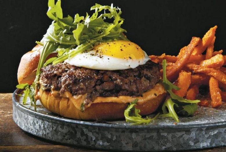 Cooking mushrooms with garlic, thyme, and red wine will make you feel as if you're creating a luxurious French dish, but the result is a flavorful burger topped with a fried egg, truffle oil, Parmesan, and arugula.
