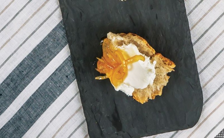The concentrated lemon of the marmalade highlights the citrus notes typical of fresh goat cheeses, while bay leaf adds a subtle herbal note that complements similar undertones in the cheese.