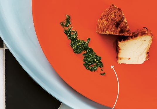 Easy to make, endlessly adaptable, and full of cheese-friendly, concentrated fresh herb flavors, pesto is an indispensable sauce in pairing. Preserved lemon adds a floral quality to this version, in which the bright citrus and herbal flavors tame the sheepy heat of Ricotta Peperoncino.