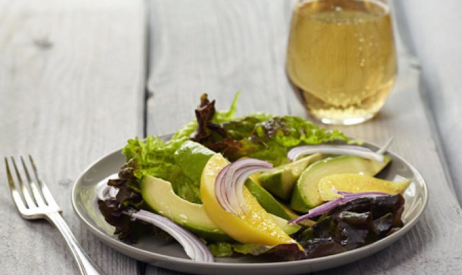 Sweet and juicy mango and soft, creamy avocado make the perfect pair in this simple salad dressed with a homemade vinaigrette.