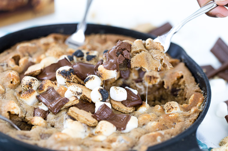 Outdoor bonfires might be over, but that doesn't mean you have to put away your s'mores kit. Whip up this indoor s'mores skillet made with Krusteaz Triple Chocolate Chunk Cookie Mix. Dip with graham crackers or just dig in with a fork, no one's judging.