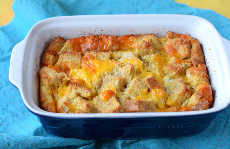 Feeding a crowd couldn't be easier with this simply egg-based breakfast casserole. Ordinary slices of bread and beaten eggs are transformed into a hearty casserole after a brief bake in the oven. And it can be customized to suit your guests' tastes or dietary restrictions. Click here for the recipe.