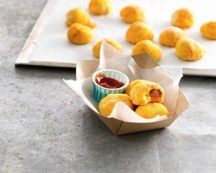 Cheesy Sriracha Corn Dog Poppers