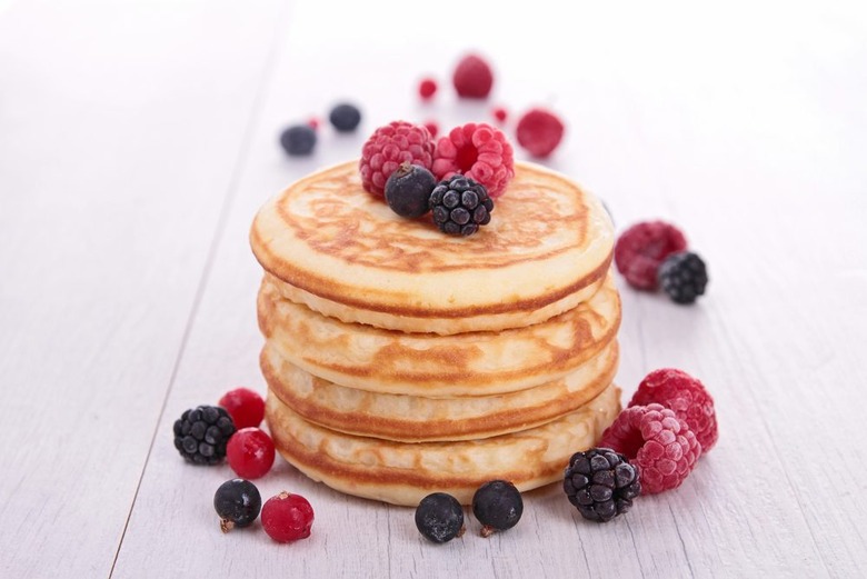 These super moist and super fluffy pancakes don't need much else; we like a simple drizzle of maple syrup and fresh berries.