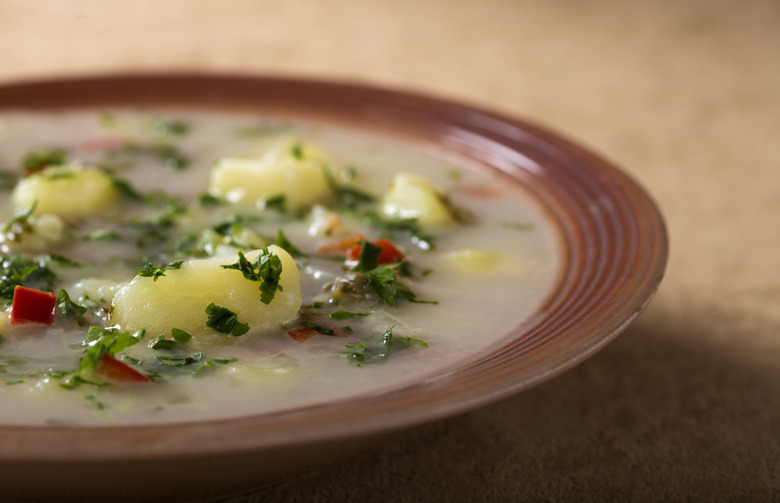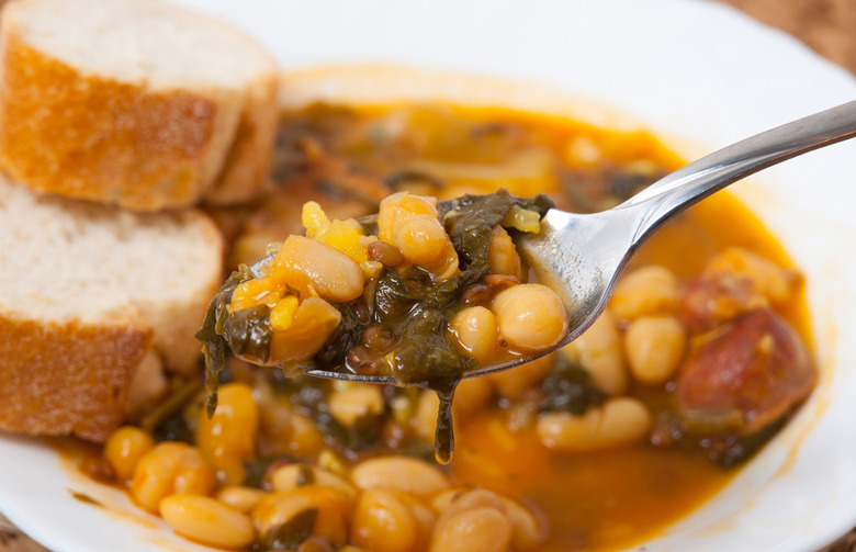 Caldo gallego is Spain's version of a rustic sausage soup. This classic soup gets its heat from spicy chorizo and Spanish smoked paprika. The white beans, starchy potatoes, and turnips add body.