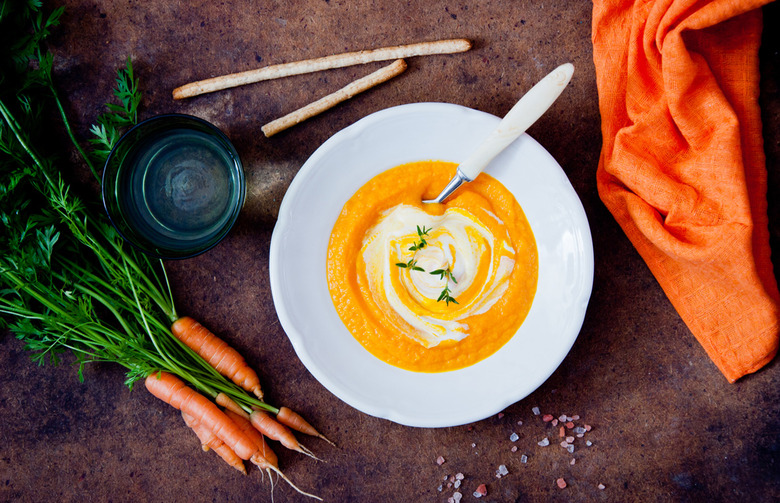 This creamy tomato soup trumps the watery canned version any day. The carrots, onions, and chicken broth add tons of flavor. Just purée the ingredients and finish with cream for something truly delicious tomato soup.