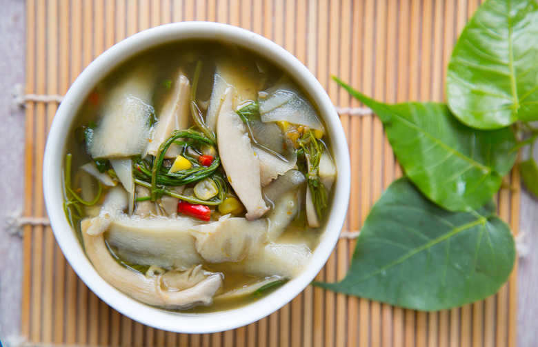 This rich, earthy soup is given the perfect amount of tang from soy sauce and ginger. To make it vegetarian, substitute the chicken stock with vegetable stock. — Cooking Light Good Mood Food Cookbook