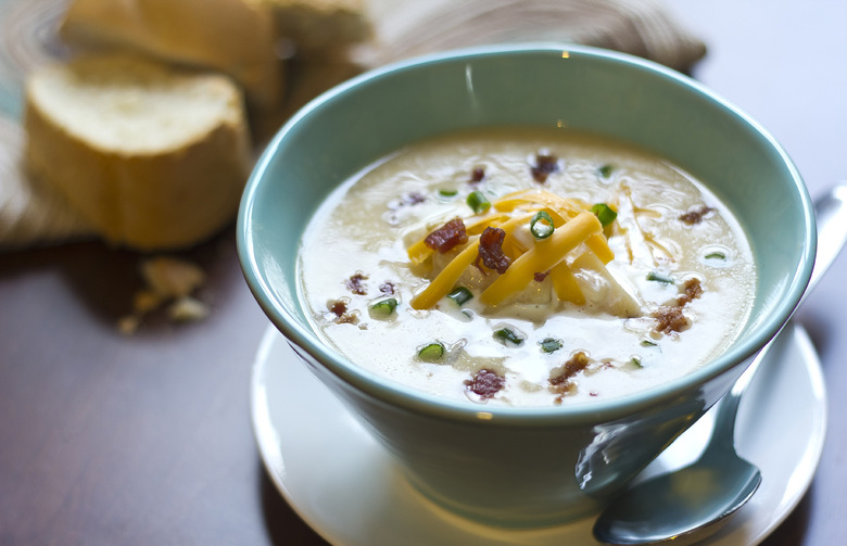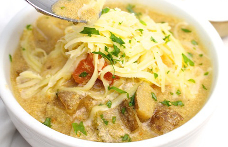 This hearty, chunky potato soup is loaded with vegetables, cheese, and fresh herbs. Just add the ingredients to your slow-cooker and let your favorite kitchen tool do all the work.