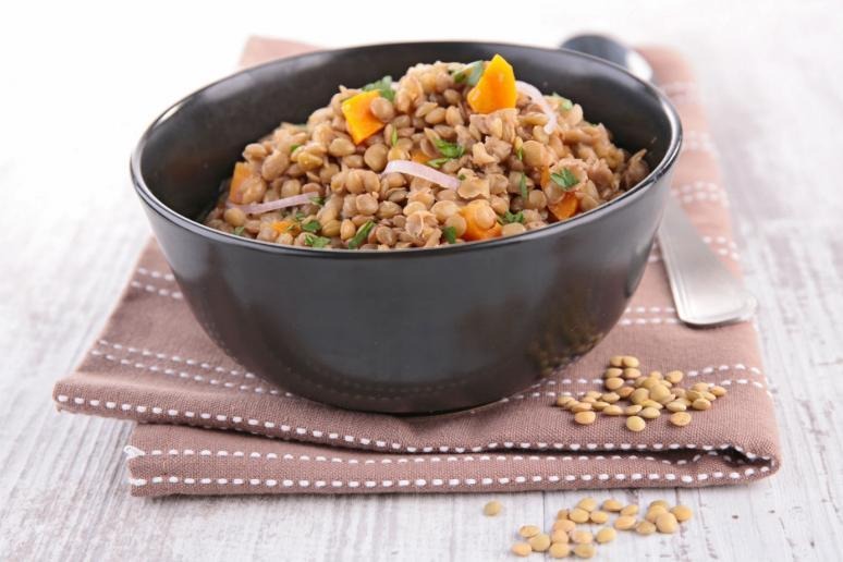 Lentils are rich in fiber, protein, and iron, and they provide a nice bite to this warm salad. Their earthy flavor is matched with a mustard vinaigrette. Lentils take no time to cook at all, but if you really don't want to turn on the stove, substitute them for a pulse that is already cooked, like canned chickpeas or cannellini beans.