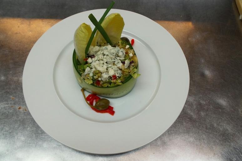 No salad-recipe roundup could be complete without some rendition of the chopped salad. This classic dish uses a variety of crisp and crunchy vegetables, diced in such a manner as to afford clean and simple eating.