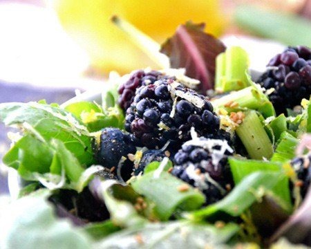 Blackberries are an elegant addition to savory salads. Lemon zest, dill, and sesame seeds make for a stimulating ensemble of tastes. This salad takes no time to make and will seriously impress your guests.