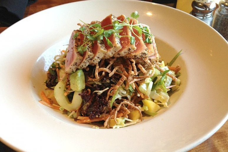 If "Seared Ahi Salad" doesn't grab your attention, maybe "Mango Sriracha Dressing" will. This beautiful dish is not your normal tuna salad. Tuna steaks are quickly seared, and paired with crispy vegetables like shredded cabbage and carrots, julienned snow peas, and daikon sprouts. Searing tuna is really a matter of getting a crust on the outside, while maintaining a rare center. You can even cut it up completely raw and serve it as a tartare or poke.