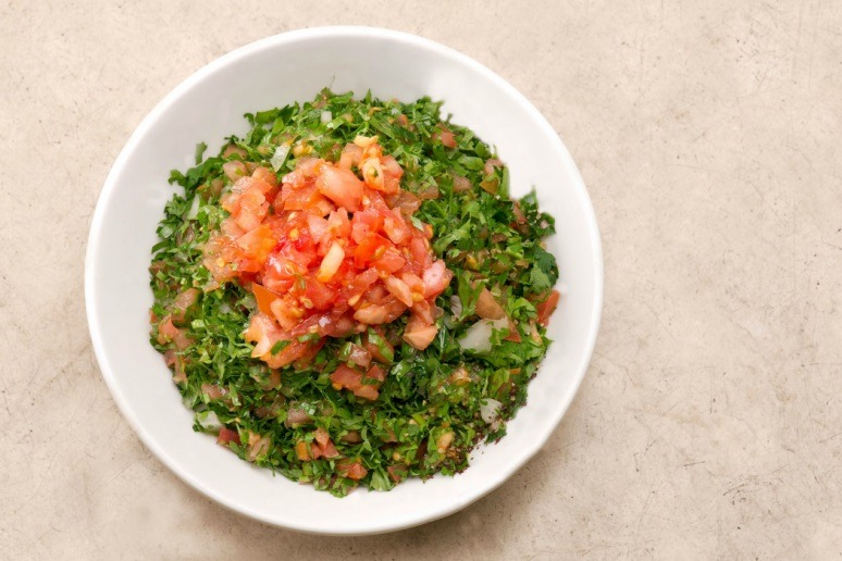A classic Mediterranean salad, tabbouleh is unique because it is comprised of almost equal parts fresh parsley and bulgur (a textured cracked wheat). Lemon juice, green onion, and tomatoes make this salad super-refreshing.