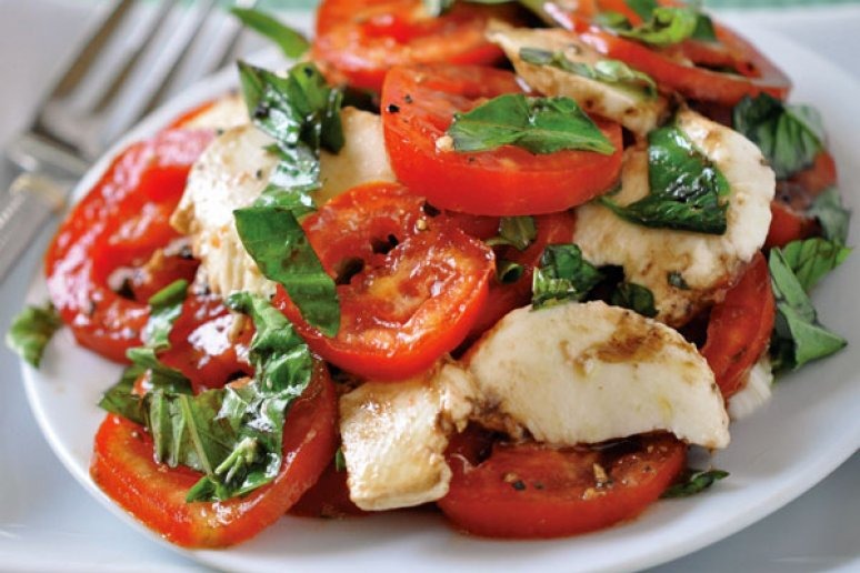 The classic salad embraces the national flag of Italy. This salad is best with fresh, in-season tomatoes, fresh basil, rich mozzarella, and good balsamic vinegar.