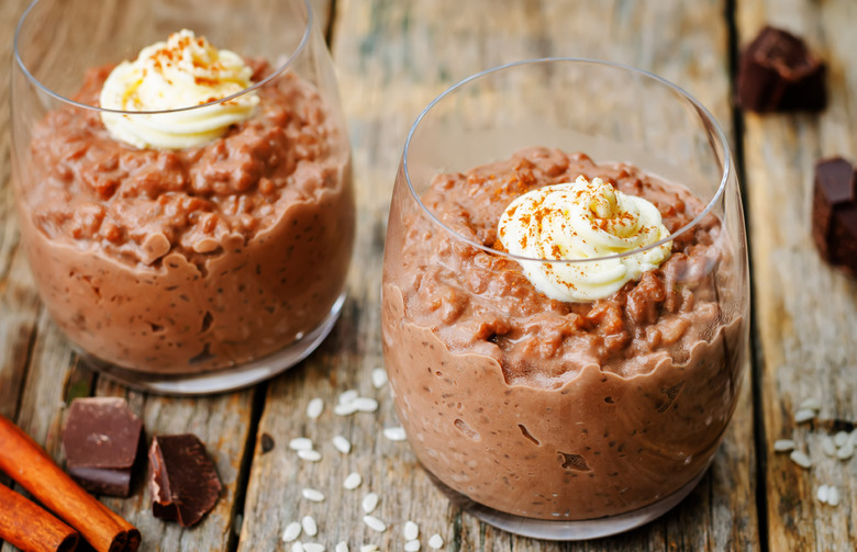 This twist on a classic rice pudding includes crispy bacon, malted chocolate powder, and coconut milk.