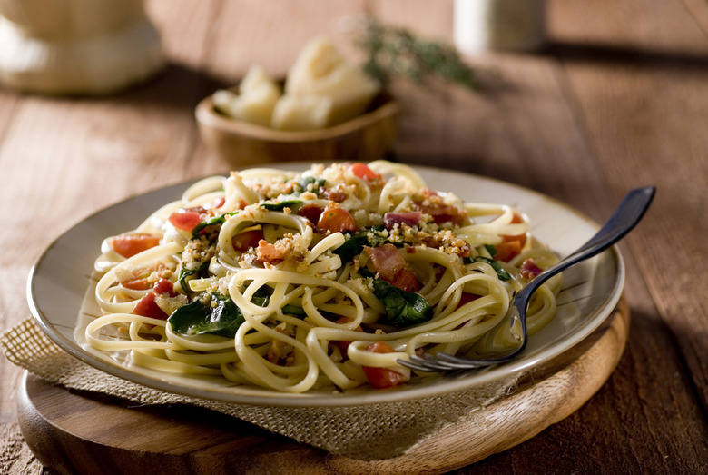 Crisp bacon, chopped tomato, and fresh greens give a packaged pasta salad mix terrific flavor. — Taste of Home