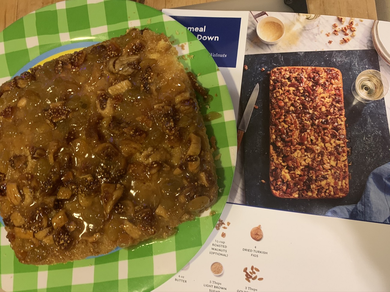 Baking these desserts was quite simple. The upside-down cake was basically a dump cake — the hardest part was chopping up sticky figs and making sure the caramel sauce didn't burn.