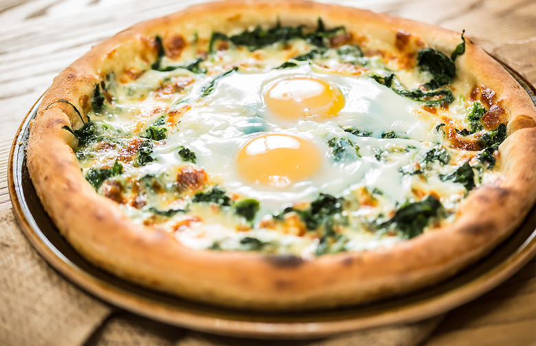 Pizza dough, tomatoes, black kale, eggs, and Parmigiano-Reggiano team together to bring you the best breakfast pizza imaginable.
