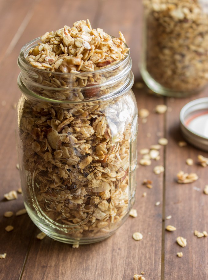 Try this spiced nut granola for a filling breakfast. Made with almonds, flax seed and oats, you'll be ready to power through whatever the day holds! The earthy, nutty flavors will pair perfectly with creamy yogurt, or can be enjoyed plain!