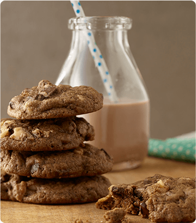 Can't get enough chocolate? Try these Double Trouble Chocolate cookies. A package of Krusteaz Triple Chocolate Chunk Cookie Mix is kicked up a notch with added cocoa powder and chopped nuts. So rich you'll be reaching for a glass of milk!