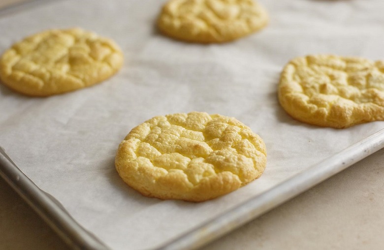 The cloud bread will need to bake for about 25 minutes or until it's golden brown. Make sure you move the bread to a wire cooling rack once it's done, which is one baking tip every home cook should know.