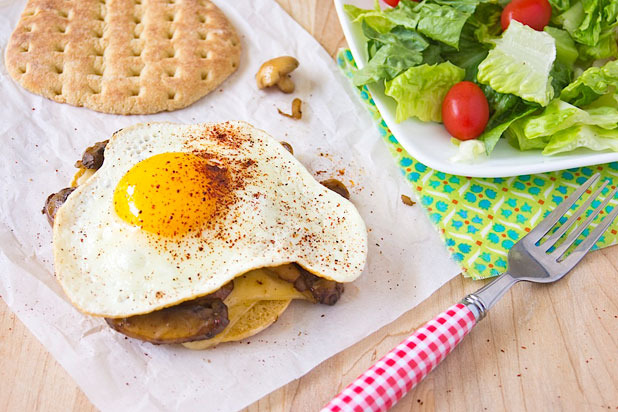 DivineCusine — Fried Eggs with Balsamic Glazed Mushrooms & Breaded Zucchini with Basil Mayonnaise