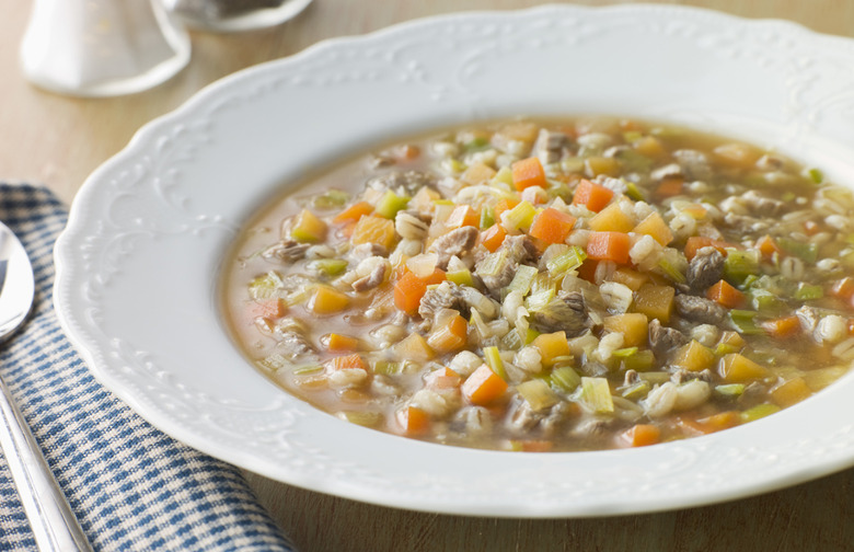 Lean bison is added to this otherwise classic barley soup for a refreshing and unusual twist. Bison isn't as gamey as you might think, but is instead just a tad sweeter than beef.