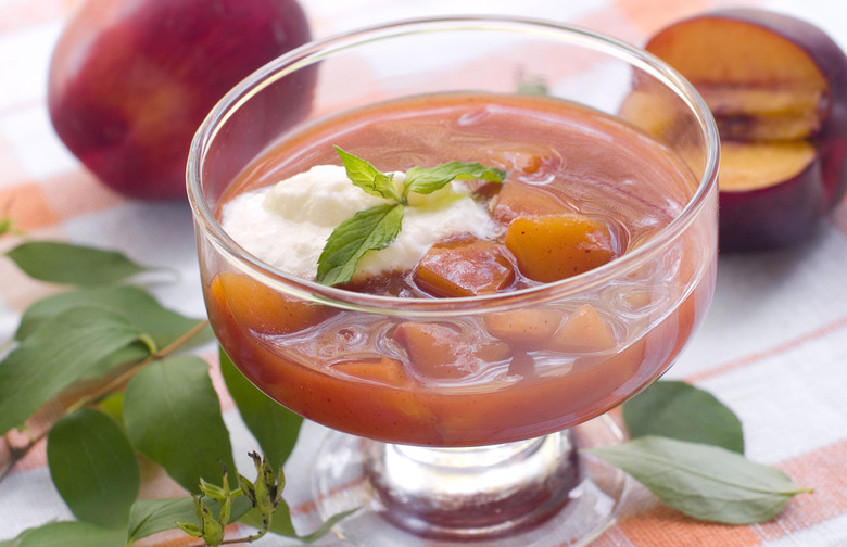 A chilled fruit soup is a perfect second or third course, or maybe even a starter on its own. Although we've been known to serve this dish in shot glasses, or even white wine glasses, it also works well the old-fashioned way: with a bowl and spoon. In that case, have a baguette at the table, too. And if you're feeling adventurous and have some buttery shortbread on hand, sweeten some plain yogurt with maple syrup, and use it to garnish this tasty soup for a different twist on dessert. — Vegetarian Dinner Parties