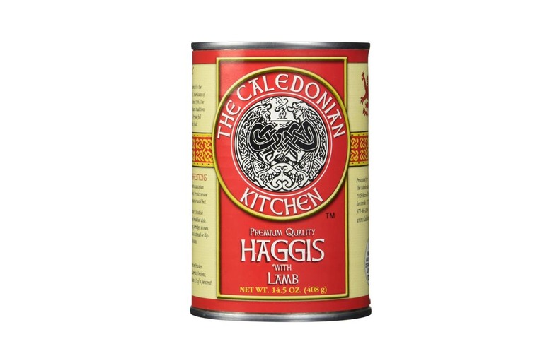 The classic Scottish dish, a savory pudding made from sheep's heart, liver, and lungs, is canned whole here, and advertises a "synthetic skin."