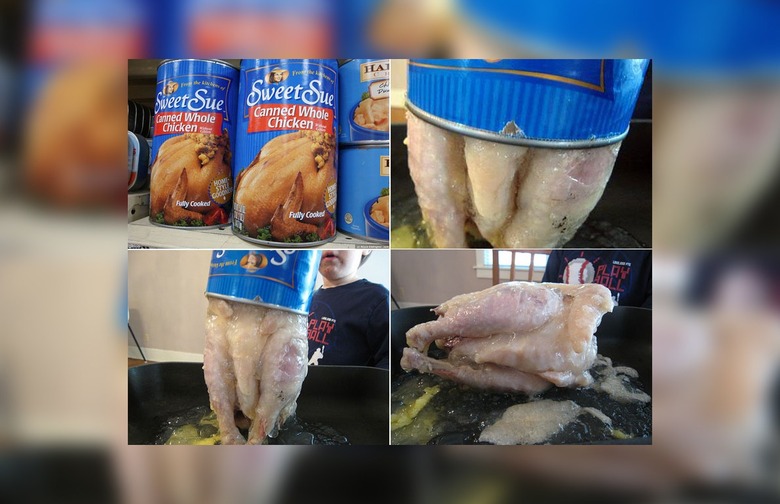 These monster, 50-ounce cans, hold an entire, fully-cooked chicken, for those days when roasting a fresh bird feels like too much work. However, one look at the slimy creature that emerges from the can, and you may decide to skip dinner.