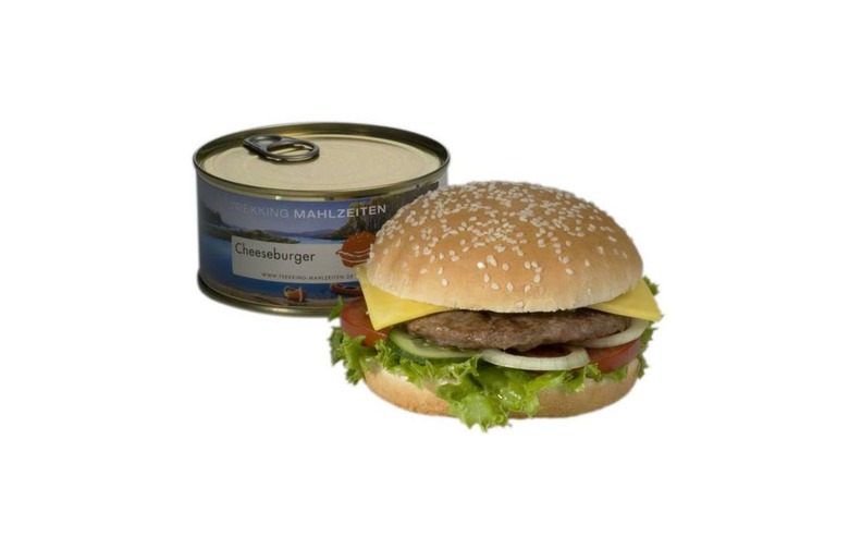 We aren't sure how well a canned cheeseburger would go over in America where a hot fast food burger is just a dollar and a short walk/drive/metro trip away, but in Germany, one company is marketing a cheeseburger in a can designed for a quick meal on a weekend camping trip. Note: bun, lettuce, tomato, and pickles are included.