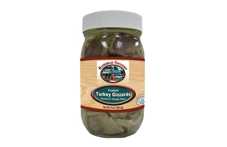 Gizzards, the thing you usually toss from your turkey, or sauté to add flavor to gravies are also something you can find in the canned food aisle. Turkey gizzards are usually brined in vinegar and then packed into cans fully cooked.