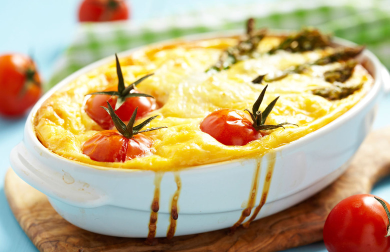 Farro (a wheat-based whole grain) is good and chewy after it's cooked. It adds texture to this light and healthy casserole and eating it could help you burn more calories since it takes a good deal of work for your body to break it down.