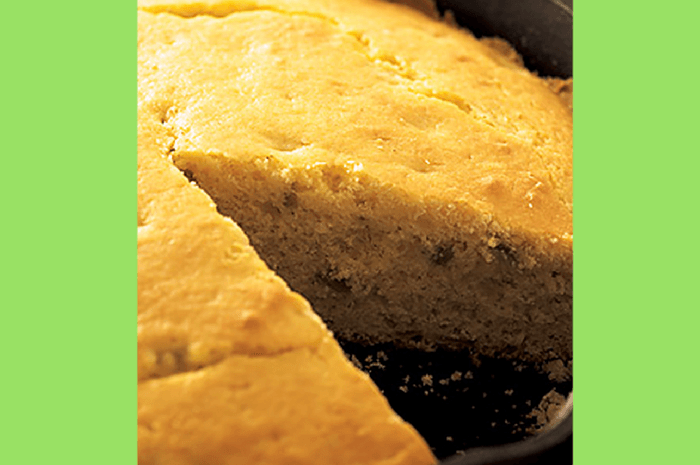 When in doubt, always bet on cornbread! It's the perfect BBQ side dish and this green chili and cheese cornbread has just the right amount of spicy cheesy goodness.