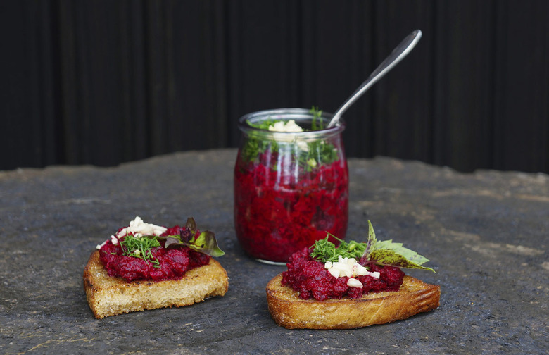 Roasted Beet, Feta, and Walnut-Topped Crostini