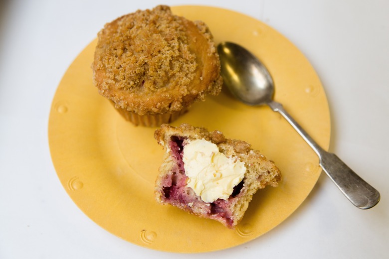 How about a batch of Country Crock® Raspberry Muffins, whipped up by Pastry Chef Jenny Mccoy? Not only are they easy and delicious, they look so pretty bursting with bright pops of color. Made with Country Crock®, these fruit-filled treats are soft and crumbly on the inside and perfectly crusty on the top.